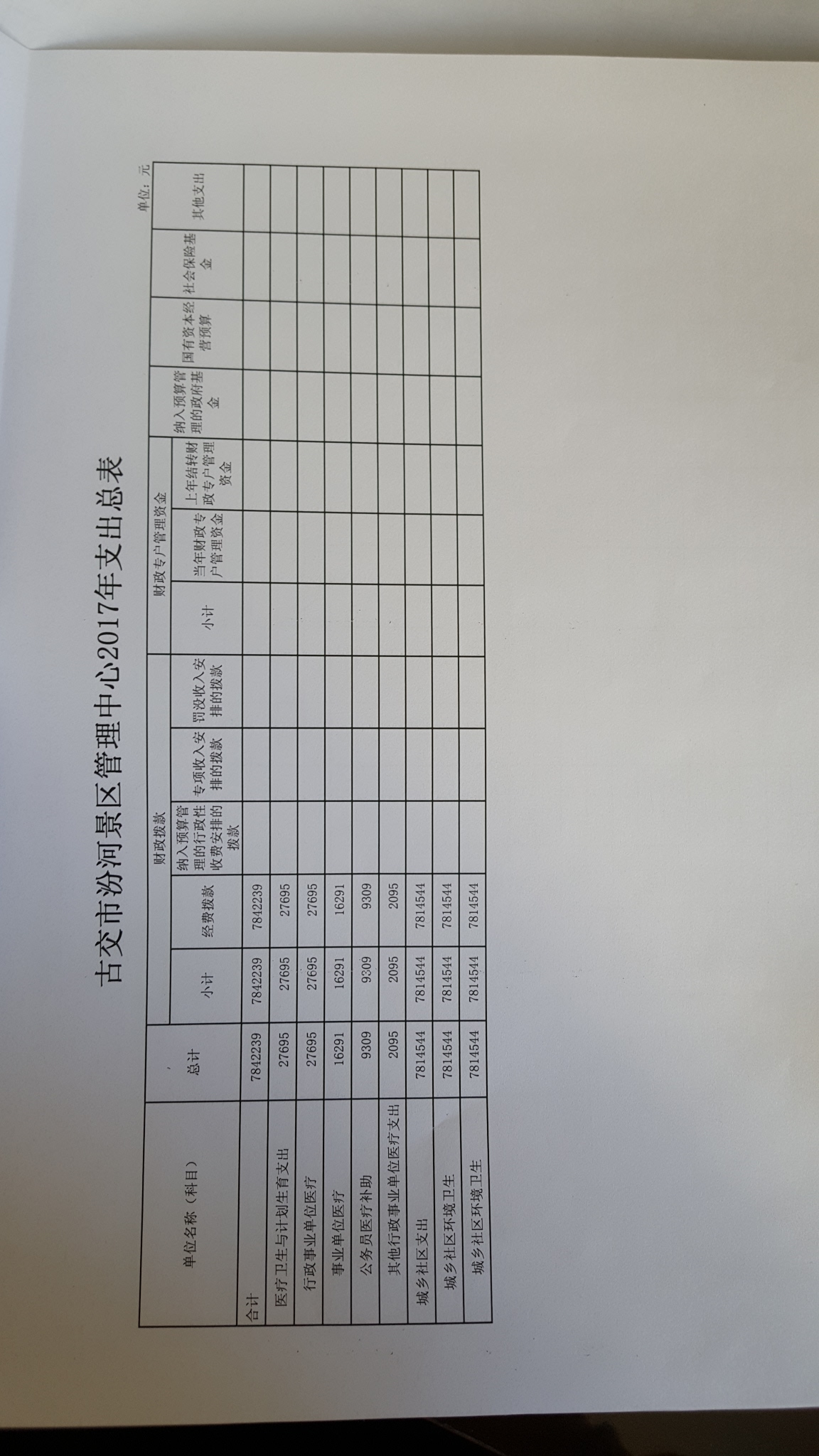 古交汾河景区管理中心2017年部门预算及“三公”经费