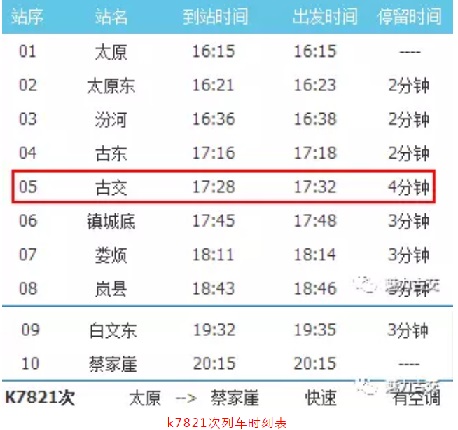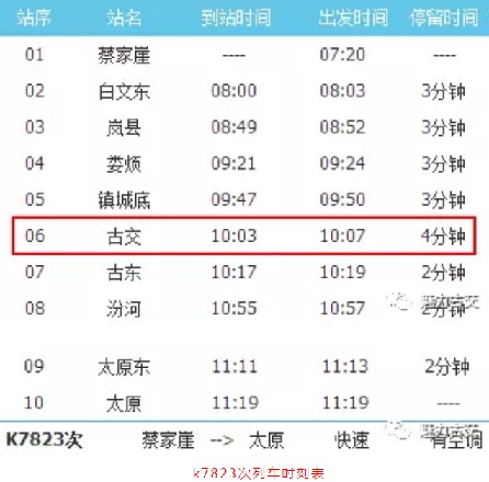 6月21日7时20分,冠名为“蔡家崖号”的k7822次(太兴铁路客运)旅客列车首次从革命老区兴县蔡家崖火车站驶出,开往省会太原。即日起,太原——镇城底4617\8 、4619\20次列车停运。