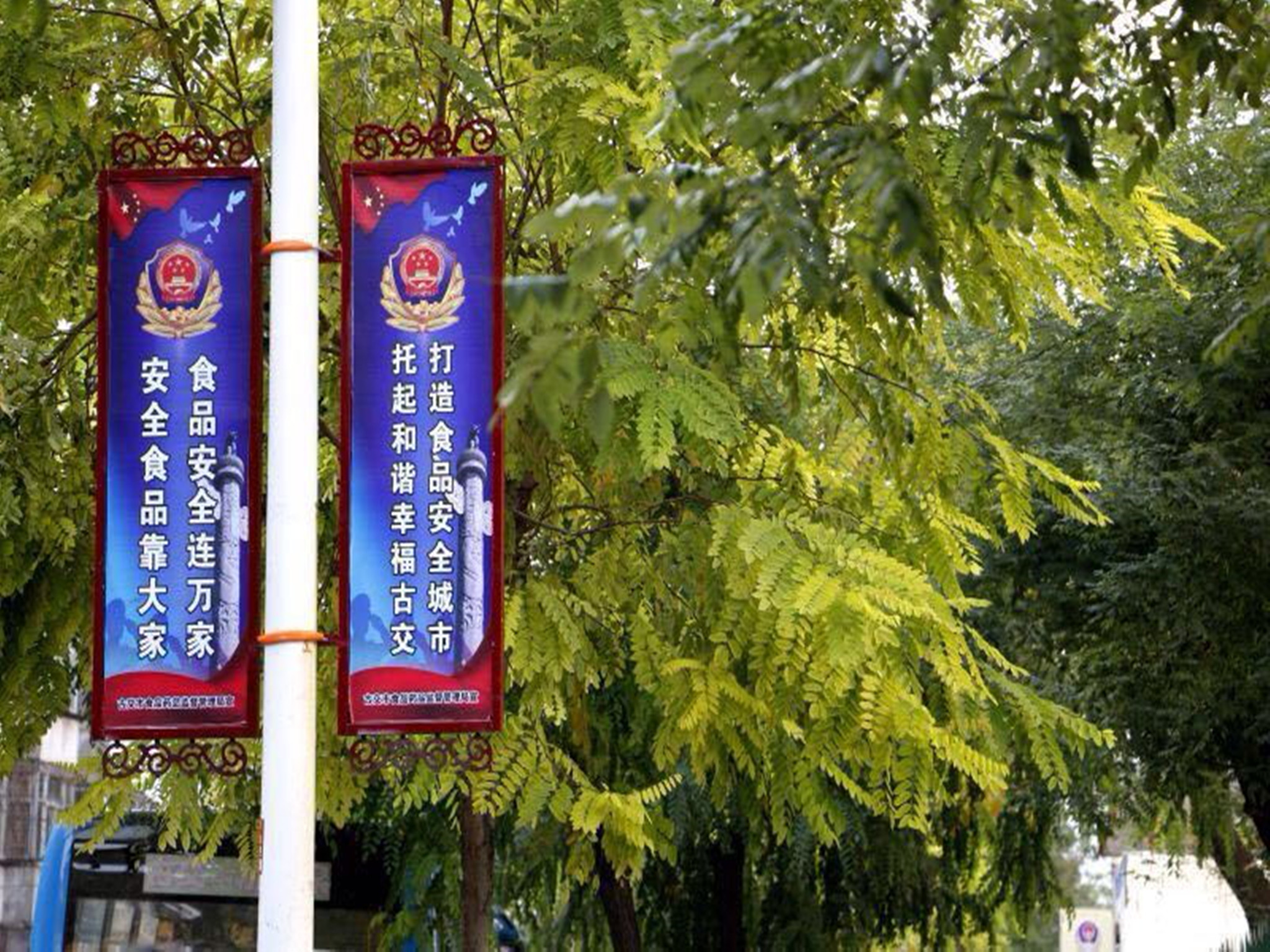 图三:古交市食品安全示范街全部悬挂食品安全宣传道旗。